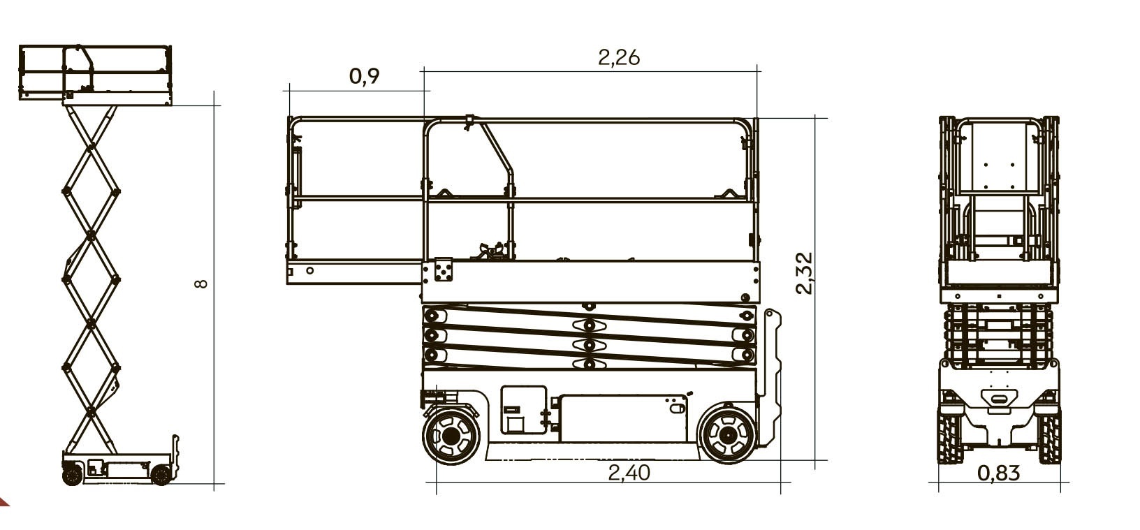 2400 х 830 х 2320 mm