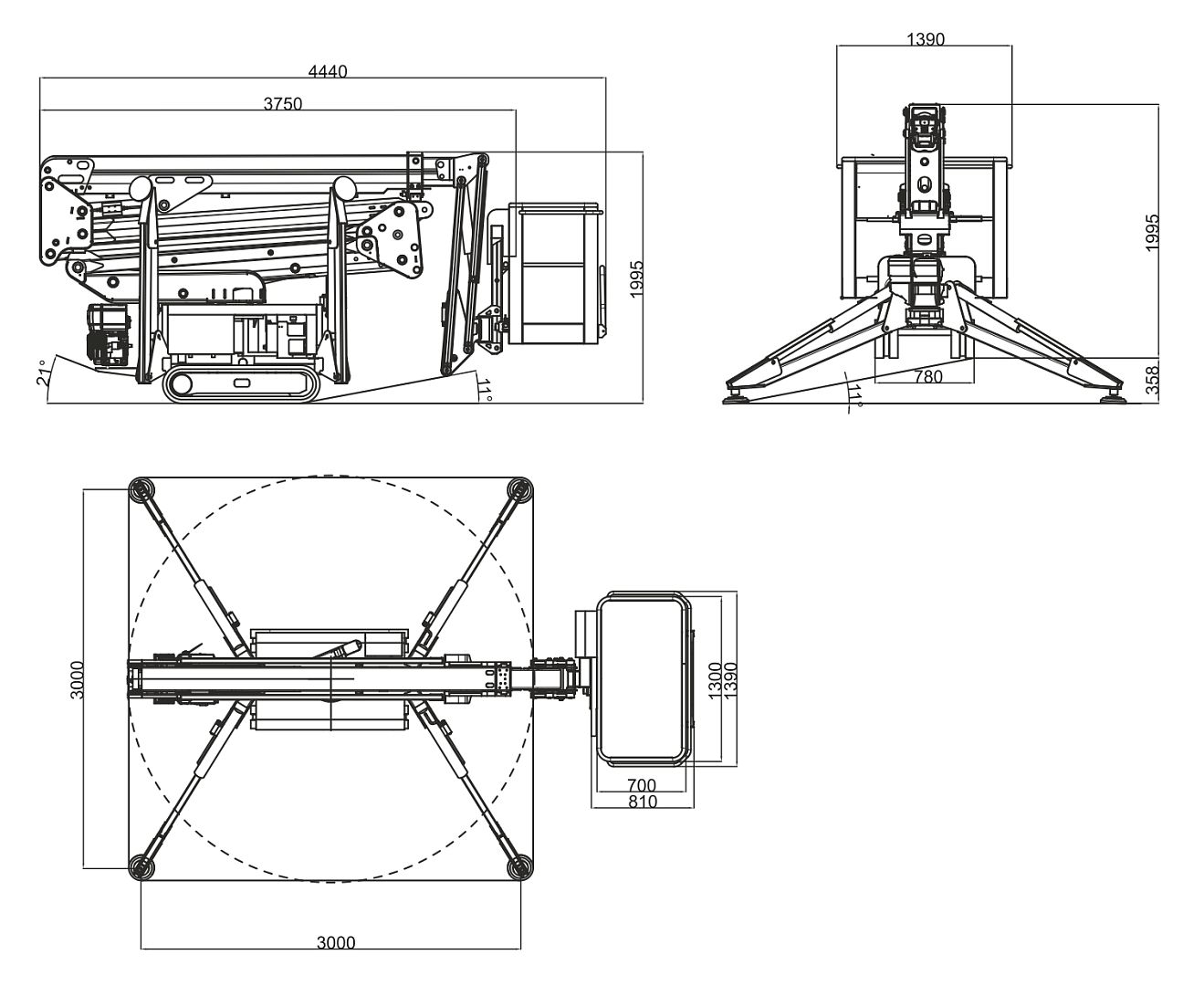 1990 х 780 х 3750 mm